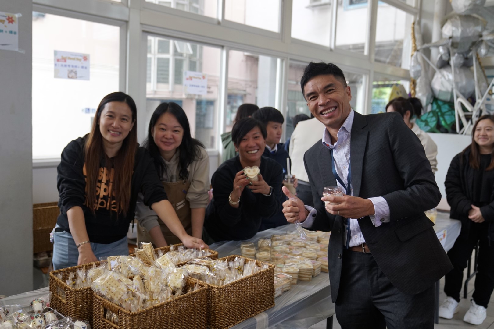 The activity kicked off on Day 1 by distributing bananas to students, leveraging their natural stress-relieving properties to encourage a good start to the week. The main event on Day 2 was a vibrant celebration of support, featuring multiple engaging booths. A highlight was the collaboration with our parents (PTA), who prepared 800 delicious snacks, including popular treats like strawberry chocolate and bubble milk tea, creating a festive atmosphere.